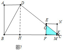 ⑥如图7中,当$\frac{29}{2}$<t≤16时,重叠部分是四边形MKGF.![]()