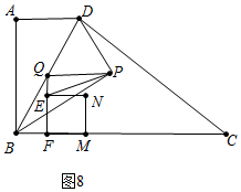 (3)①如图8中,当∠EQP=90°时,由FQ=4,可知BF=2,∴t=2.![]()