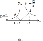 ∴$\frac{OA}{OB}$=$\sqrt{\frac{{S}_{△AOC}}{{S}_{△OBD}}}$=$\sqrt{\frac{\frac{1}{2}×12}{\frac{1}{2}×3}}$=2;