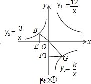 ∵函数y3=$\frac{k}{x}$(x<0)的图象与y1=$\frac{12}{x}$(x>0)的图象关于x轴对称,