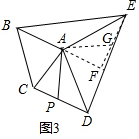 (3)当∠BAC=∠DAE=90°时,AP=$\frac{1}{2}$BE,