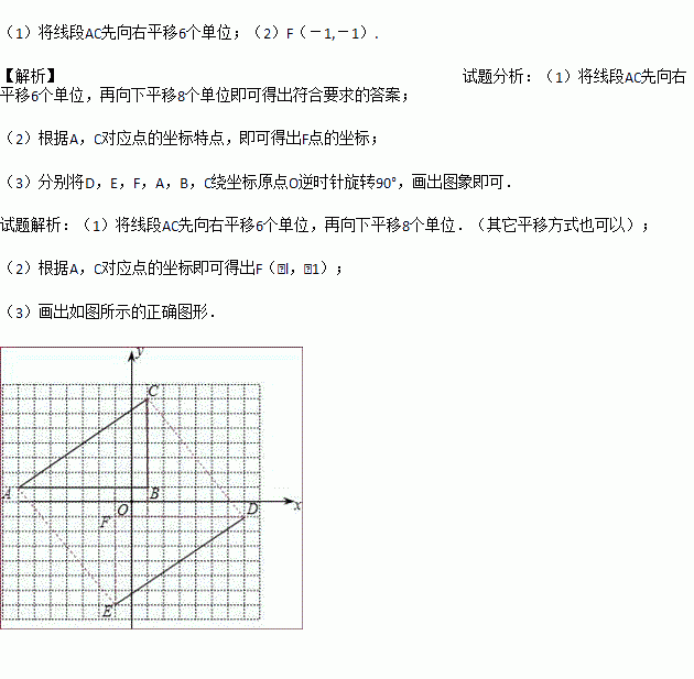 (1)试说明如何平移线段AC,使其与线段ED重合;