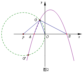 (3)在x轴上取一点P(-2,0),以P为圆心,OP为半径作圆,⊙P与抛物线的交点,即是所求作的点G(图中的G与G′).当点G在x轴上方时,利用两边及夹角法推知△GPA∽△BPG.故∠PGA=∠PBG,结合等边对等角得到:∠POG=∠PGO.又由图中角与角间的和差关系推知:∠POG=∠PBG+∠OGB,∠PGO=∠PGA+∠AGO,即∠AGO=∠BGO.同理可证:当点G(G′)在x轴下方时,结论也成立.