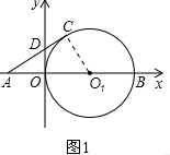 分析 (1)根据切线的性质得出O1C⊥AC,由sinA=$\frac{{O}_{1}C}{{O}_{1}A}$=$\frac{1}{2}$,得出∠OAD=30°,从而求得直线AC的斜率为$\frac{\sqrt{3}}{3}$,设直线AC的解析式为y=$\frac{\sqrt{3}}{3}$x+b,利用待定系数法求得b,即可求得D的坐标.