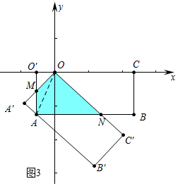 £¨4£©Èçͼ3ÖУ¬µ±µãAÆ½ÒÆµ½ÔÚA¡äB¡äÉÏʱ£¬Öصþ²¿·ÖÊÇËıßÐÎAMON£¬ÊÇÖá¶Ô³ÆÍ¼ÐΣ¬ÓÉOM=AMʱ£¬´Ëʱ$\sqrt{2}$t=$\sqrt{2}$-$\sqrt{2}$t£¬½âµÃt=2-$\sqrt{2}$£¬