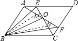 分析 根据三角形面积公式和平行四边形的面积公式易得S△ABF=S△BEC=$\frac{1}{2}$S平行四边形ABCD,则可对①②解析判断;过点B作BM⊥AF于M,BN⊥CE于N,如图,利用三角形面积公式得S△ABF=$\frac{1}{2}$AF•BM,S△BEC=$\frac{1}{2}$CE•BN,若AF=CE,则BM=BN,根据角平分线性质定理的逆定理得到OB平分∠AOC,则可对③解析判断;当∠AOB=∠BOC,根据角平分线性质定理得到BM=CN,然后由S△ABF=$\frac{1}{2}$AF•BM,S△BEC=$\frac{1}{2}$CE•BN可得AF=CE,于是可对④解析判断.