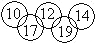 在奥运五环图案内,分别填写五个数a,b,c,d,e,如图,,其中a,b,c是三个连续偶数(a<b),d,e是两个连续奇数(d<e),且满足a+b+c=d+e,例如:
