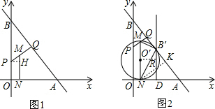 £¨2£©ÓÉ£¨1£©BµÄ×ø±ê¿ÉÒÔÇó³öOB£¬ÔÙÓɹ´¹É¶¨Àí¾Í¿ÉÒÔÇó³öABµÄÖµ£¬ÓÉPQ¡ÍAB£¬¸ù¾ÝÈý½ÇÐεÄÕýÏÒÖµ±íʾ³öPQÔÙÓÉÒÑÖªÌõ¼þ¿ÉÒÔ±íʾ³öPM£¬Èçͼ1×÷PH¡ÍMN¿ÉÒÔÇóµÃ¡ÏMPH=¡ÏABO£¬¿ÉÒÔ±íʾ³öMH£¬ÕâÑù¾Í¿ÉÒԵóö½áÂÛ£®