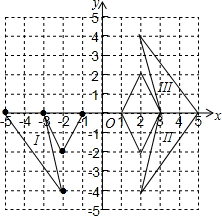 分析 (1)作出各点关于y轴的对称点,顺次连接各点即可;(2)作出图案II关于x轴的对称图形,并写出各点坐标即可;(3)由图案I与图案Ⅲ的位置即可得出结论.