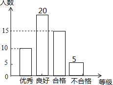 ¡°²»ºÏ¸ñ¡±µÄѧÉúÓÐ50¡Á10%=5£¨ÈË£©£¬¡°Á¼ºÃ¡±µÄѧÉúÓÐ50-10-15-5=20£¨ÈË£©£¬
