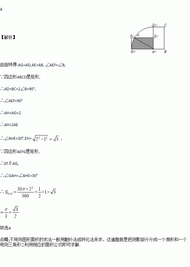 ,若AB=1,BC=2,则阴影部分的面积为( )