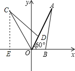 分析:(1)将OA、OB分别旋转60度,(2)点A旋转过程中所经过的路程既是点A划过的弧长,(3)求出点C作标,用待定系数法解答.