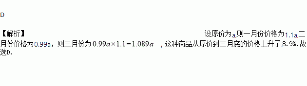 某种商品的平均价格在一月份上调了10%,二月份下降了10%,三月份又上调了10%,则这种商品从原价到三月底的价格上升了( )