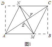 解答 (1)证明:如图1,由折叠的性质得出∠DAN=∠NAC,∠BCM=∠ACM,![]()