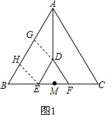 解答 解:(1)作DG⊥AB于点G,作EH⊥AB于点H.则四边形DGHE是矩形(如图1),![]()