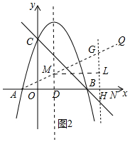 (3)如图2中,设BN的垂直平分线交x轴于H,抛物线的对称轴交x轴于D,作ML⊥GH于L.首先证明cos∠GML=cos∠GAH=$\frac{4}{5}$,由$\frac{3}{4}$AH=GH,列出方程即可解决问题.
