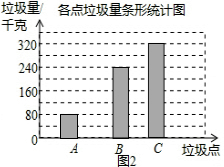 (2)利用扇形统计图以及条形统计图可得出C处垃圾量以及所占百分比,进而求出垃圾总量,进而得出A处垃圾量;