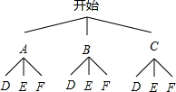 分析:首先根据题意画出树状图,然后由树状图求得所有等可能的结果与分别从中各随机抽取一个小刚抽到物理实验B和化学实验F(记作事件M)的情况,再利用概率公式即可求得答案.