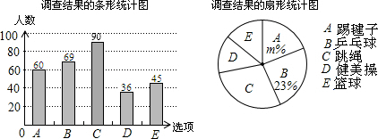 (2)用喜欢C项目的人数除以总人数即可求得其百分率,从而得到m的值;