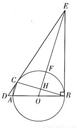 如图,AB是⊙O的直径,C是⊙O上一点,过点C作⊙O的切线,交BA的延长线交于点D,过点B作BE⊥BA,交DC延长线于点E,连接OE,交⊙O于点F,交BC于点H,连接AC。