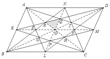 则A、R、O、H、C共线,B、G、O、T、D共线,K、E、O、F、M共线,N、Q、O、P、L共线,
