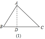 解:如图(1),△ABC中,AB=15,AC=20,BC边上高AD=12,