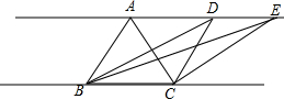 解答 解:这样的三角形形状不确定,大小确定,先画BC边长为4,因为面积为6,所以BC上的高为3,这样的 高可以画无数条,所以形状不一定.如图,∵AE∥BC,∴S△ABC=S△DBC=S△EBC=6.