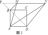 解答 解:(1)如图1,将△ABM绕点A顺时针旋转90°后得到△ADE,![]()