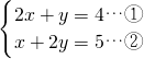 (2)①×2-②即可消去y求得x的值,然后把x的值代入①即可求得y的值,从而得到方程组的解.