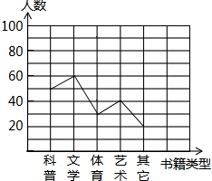 2014年3月,某中学结合镇江中小学生阅读素养评估活动,以“我最喜爱的书籍”为主题,对学生最喜爱的一种书籍类型进行随机抽样调查,收集整理数据后,绘制成统计表和如图所示的数学统计图.