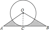 分析 连接OC,由AB为圆的切线,得到OC垂直于AB,再由OA=OB,利用三线合一得到C为AB中点,且OC为角平分线,在直角三角形AOC中,利用30度所对的直角边等于斜边的一半求出OC的长,利用勾股定理求出AC的长,进而确定出AB的长,求出∠AOB度数,阴影部分面积=三角形AOB面积-扇形面积,求出即可.