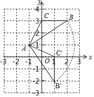 (2)如图,△AB′C′即为所求,![]()