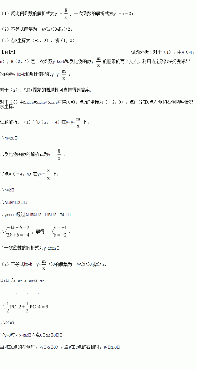 如图,已知A(﹣4,n),B(2,﹣4)是一次函数y=kx+b和反比例函数y=