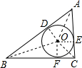 解:如图所示,⊙O与△ABC三边分别相切与AB,BC,AC于点D,F,E,