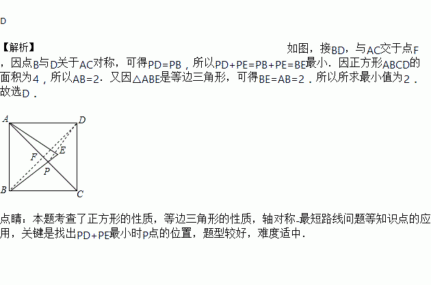 如图,正方形ABCD的面积为4,△ABE是等边三角形,点E在正方形ABCD内,在对角