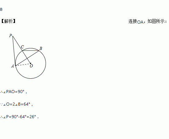 如图,PA与⊙O相切,切点为A,PO交⊙O于点C,点B是优弧CBA上一点,若∠ABC=320,则∠P=( )度