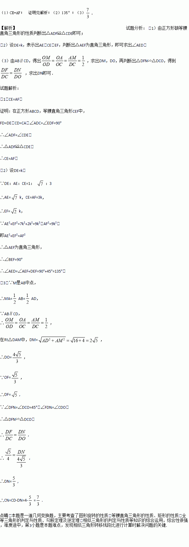 (1)当三角板旋转到图1的位置时,猜想CE与AF的数量关系,并加以证明;