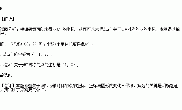 将点A(3,2)向左平移4个单位长度得点A′,则点A′关于y轴对称的点的坐标是( )