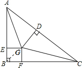 解答 解:连接BG,∵直角三角形ABC中,AB=6cm,BC=8cm,∴S△ABC=$\frac{1}{2}$×6×8=24(cm2),又∵AC=10cm,正方形BFGE的边长为2cm,∴S△ABG+S△BCG+S△AGC=$\frac{1}{2}$×2×6+$\frac{1}{2}$×2×8+$\frac{1}{2}$×DG×10=24(cm2),解得:DG=2.故答案为:2.