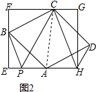 (2)如图1过点D作DP⊥EH交EH的延长线于点P,连接AC,构造全等三角形,证得DP=BF=2,由面积公式得到方程,推出边CF>FG,所以△AHD的面积不能等于2;