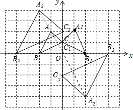 (2)如图,△A2B2C2为所求,点A2的坐标为(-2,4)或(2,-4).![]()