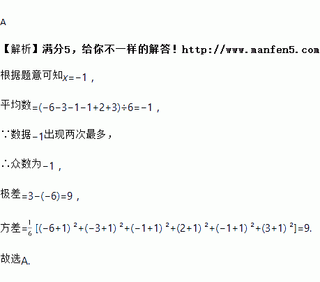 A. 方差是8 B. 极差是9 C. 众数是﹣1 D. 平均数是﹣1