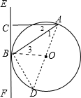 分析:如图,作直径AD,连结OB、BD,先根据切线的性质得OB⊥AC,加上AC⊥EF,则OB∥AC,根据平行线的性质得∠2=∠3,易得∠1=∠2,再根据圆中由AD为直径得到∠ABD=90°,于是可证得Rt△ABD∽Rt△ACB,利用相似比得AB2=AC•AD,再把AD=2AO代入即可得到结论.