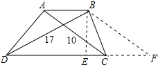 分析 作BE⊥DC于E,过B作BF∥AC,交DC的延长线于F;先证明四边形ACFB是平行四边形,得出AB=CF,BF=AC=10,再由勾股定理求出DE、EF,得出DE+EF=AB+DC,由梯形的面积公式即可得出结果.
