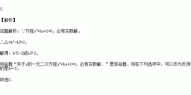 命题“关于x的一元二次方程x2+bx+1=0,必有实数解.”是假命题.则在下列选项中,可以作为反例的是( )