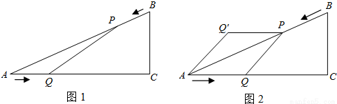 (3)如图2,把△APQ沿AP翻折,得到四边形AQPQ′.那么是否存在某时刻t使四边形AQPQ′为菱形?若存在,求出此时菱形的面积;若不存在,请说明理由.