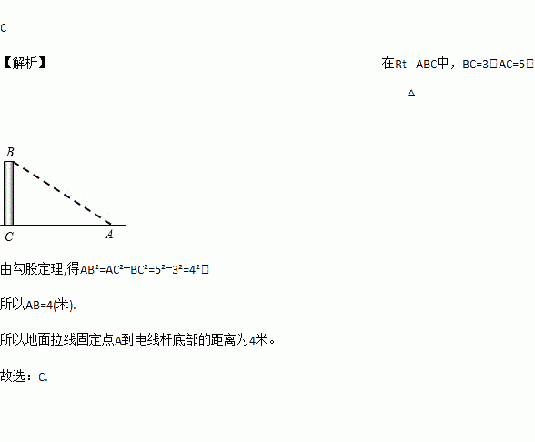 如图,从电线杆离地面3米高处向地面拉一条长为5米的拉线,这条拉线在地面的固定点距离电线杆底部有( )米.