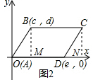 (2)在图2中,平行四边形ABCD的顶点A,B,C,D的坐标(如图),求出图中的标点C的坐标,并说明理由(C点坐标用含c,d,e的代数式表示).