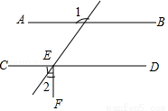 如图,AB∥CD,CD⊥EF,若∠1=125°,则∠2=( )