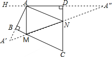 解:作A关于BC和CD的对称点A′,A″,连接A′A″,交BC于M,交CD于N,则A′A″即为△AMN的周长最小值.作DA延长线AH,